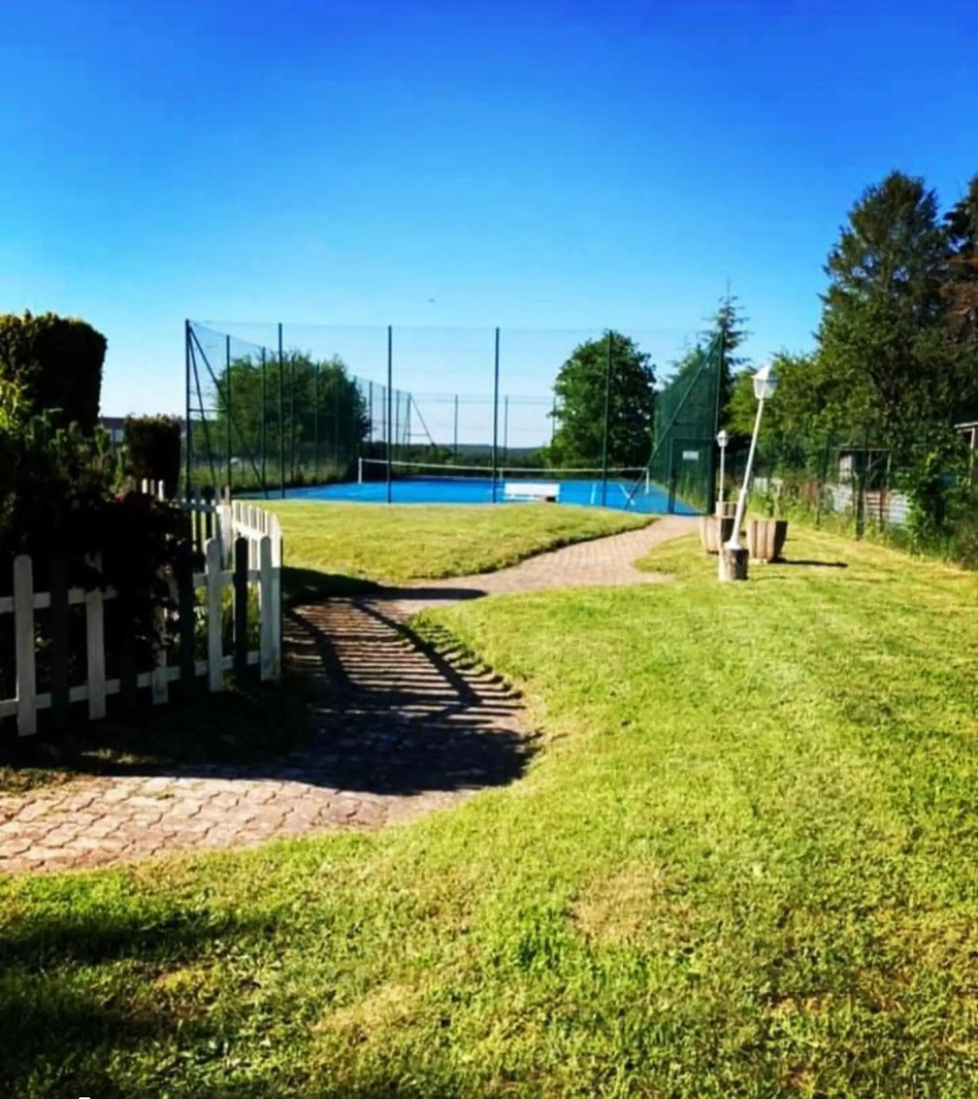 Le terrain de tennis est accessible gratuitement pour tous nos clients. Pour varier les plaisirs, vous trouverez également un terrain de volley et de ping-pong.